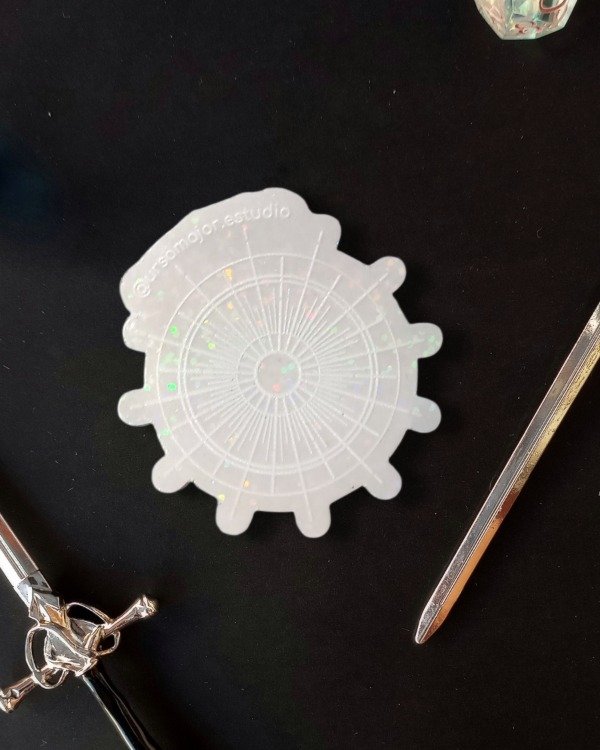 Stickers de vinilo con impresión UV, de aprox. 6cm x 6cm. Base transparente holográfica.