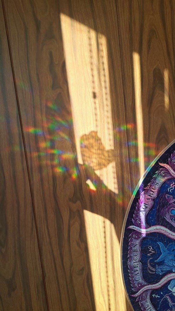 Colocar sobre vidrios con luz/sol directo para genere efecto prisma.