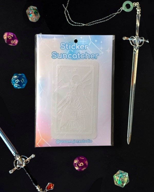 Sticker autoadhesivo impreso en UV sobre material atrapasol que genera efecto arcoiris.
