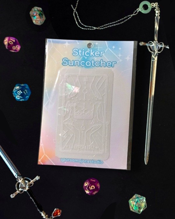 Sticker autoadhesivo impreso en UV sobre material atrapasol que genera efecto arcoiris.